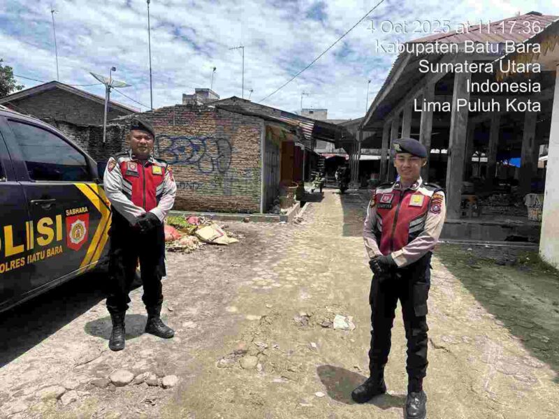 Batu Bara, 4 Oktober 2025 – Satuan Samapta (Sat Samapta) Polres Batu Bara terus mengintensifkan kegiatan cooling system dengan menyambangi masyarakat di pusat-pusat keramaian. Kali ini, kegiatan dilaksanakan di Pasar Lima Puluh, Kecamatan Lima Puluh, Kabupaten Batu Bara, pada hari Sabtu (4/10/2025) mulai pukul 11.00 WIB hingga selesai.