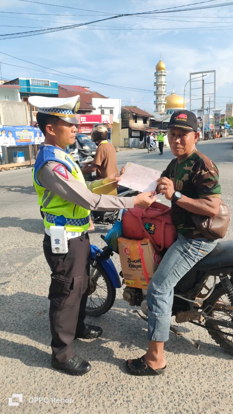Dalam kegiatan tersebut, petugas memberikan tindakan berupa tilang teguran kepada pengemudi mobil dan pengendara sepeda motor yang melanggar aturan lalu lintas.