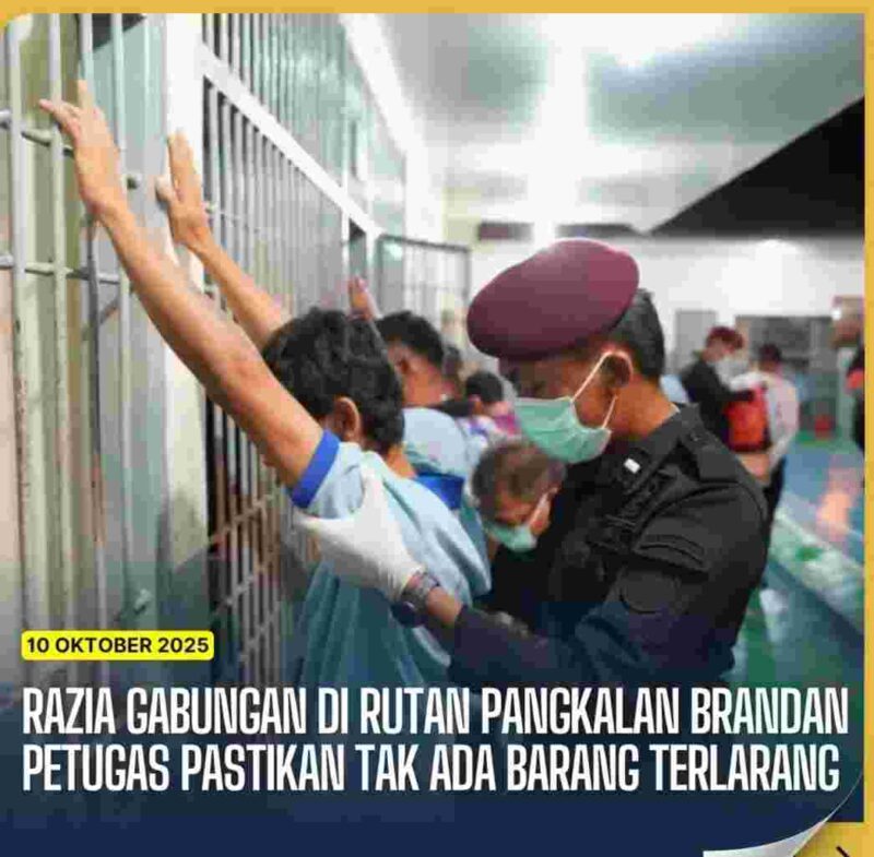 Pangkalan Brandan, 13 Oktober 2025 – Rumah Tahanan Negara (Rutan) Kelas IIB Pangkalan Brandan menggelar razia gabungan mendadak di blok hunian warga binaan pada Jumat malam, 10 Oktober 2025. Razia yang dilakukan bersama Polsek Pangkalan Brandan ini dipimpin langsung oleh Kepala Rutan Pangkalan Brandan, Akmalun Ikhsan.