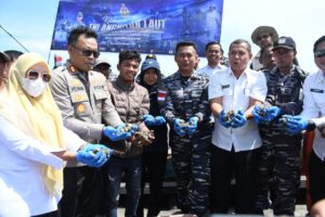 Tanjungbalai – Sebagai wujud Implementasi Asta Cita Presiden RI dalam bidang ketahanaan pangan, Kapolres Tanjungbalai AKBP Welman Feri, S.I.K., M.I.K menghadiri kegiatan Panen Raya Kerang yang diselenggarakan oleh TNl Angkatan Laut Tanjungbalai Asahan, Rabu (29/10)